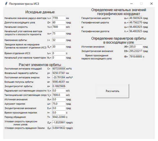 Программное обеспечение для расчета траекторий